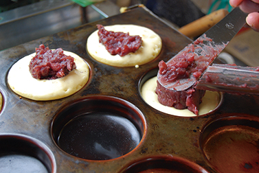 大判焼き「あんこ」には、手作りのあんこがこぼれ落ちそうなほどたっぷり!