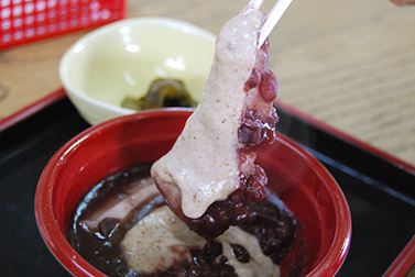 やわらかなお餅に、あんことくるみだれがよく絡まりほっとする美味しさです。