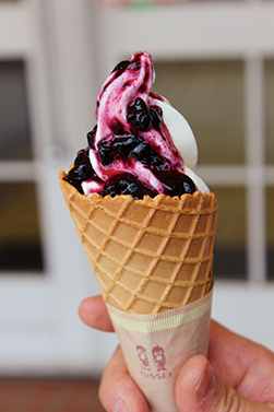 自家製山ぶどうシロップの酸味がソフトクリームの甘さとマッチし、さっぱりと頂けます!